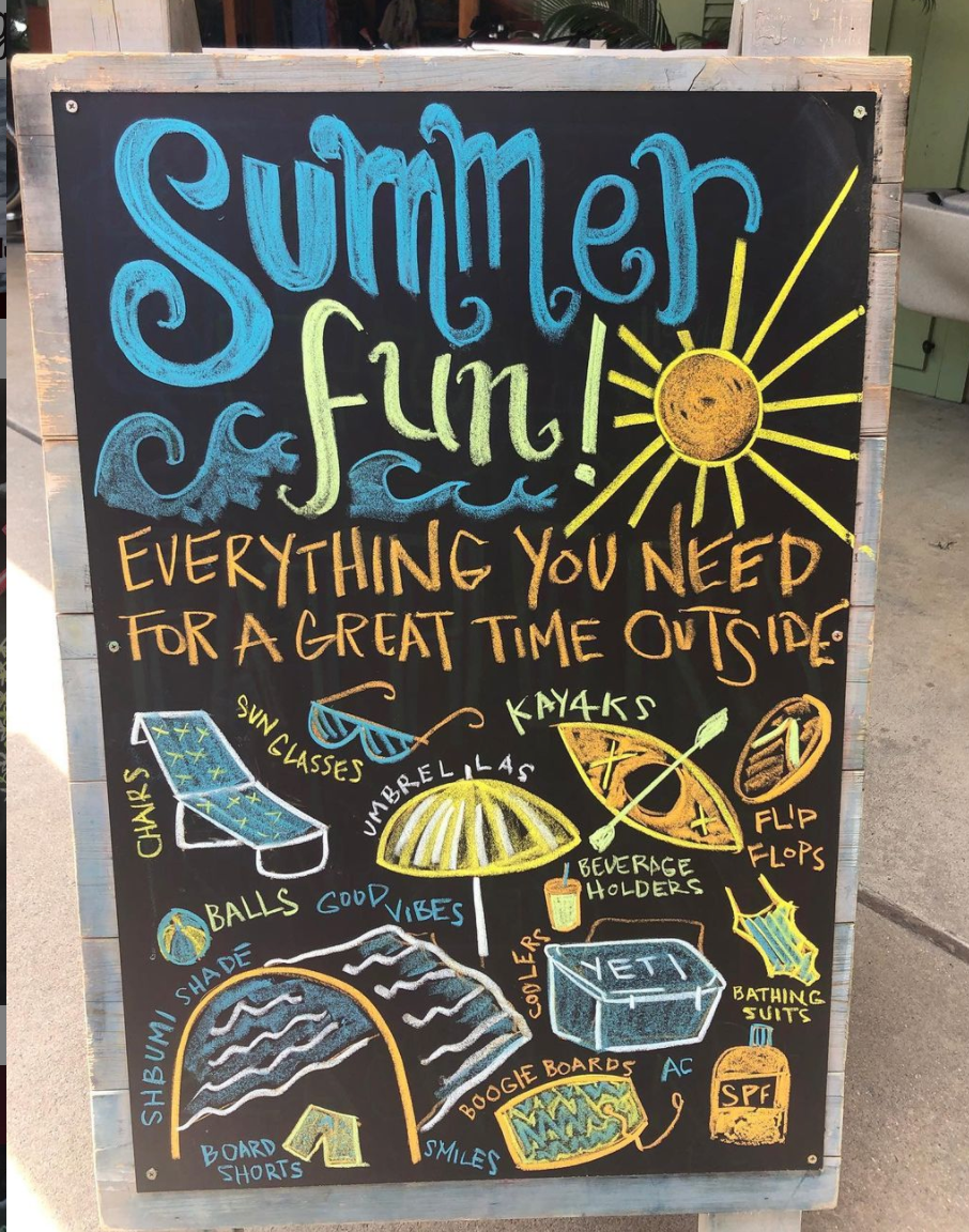 Outside Hilton Head retail store chalk boards. 2018-2021